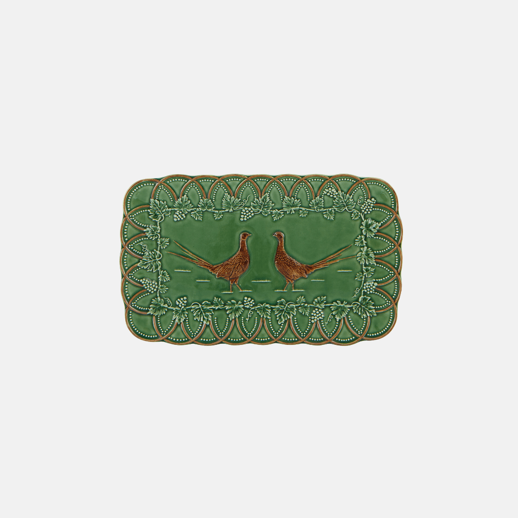Fuente grande pintada a mano de la conocida casa portuguesa Bordallo Pinheiro. La colección Bosque es una de la más vendidas para las mesas más campestres.