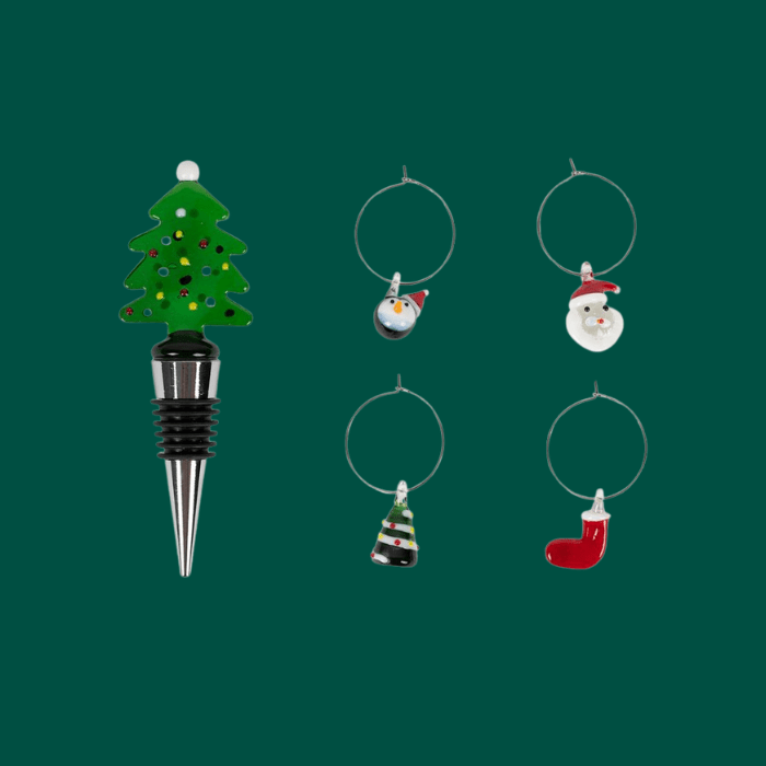 Tapón para botellas de vino con 4 marcadores de copas incluidos. Ideal para saber diferenciar la copa de cada invitado.