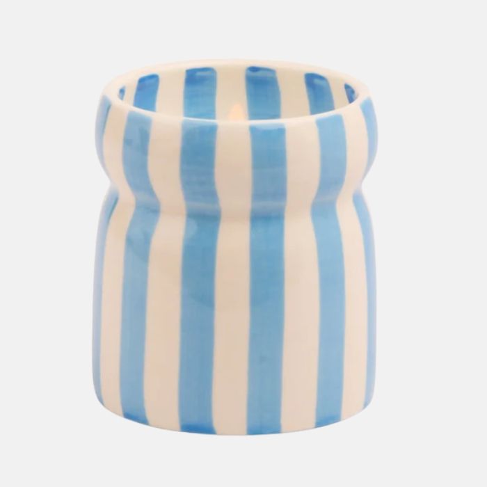 Cabana vela cerámica rayas azules